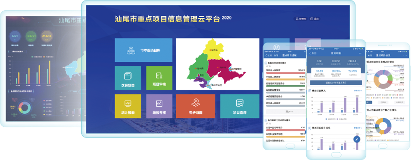 平台主要围绕项目监管、调度指挥、电子监察、绩效考核、电子地图、移动APP及“粤系列”应用对接等功能开发,实现了项目从招商、签约、建设到竣工投产的全生命周期动态监管。自2017年建设以来,经过4年多时间的运行,其功能和业务应用不断升级、扩展,已成为汕尾市各级政府和部门不可或缺的业务系统,也是全市各级领导和项目管理部门推进重点项目建设的重要抓手。